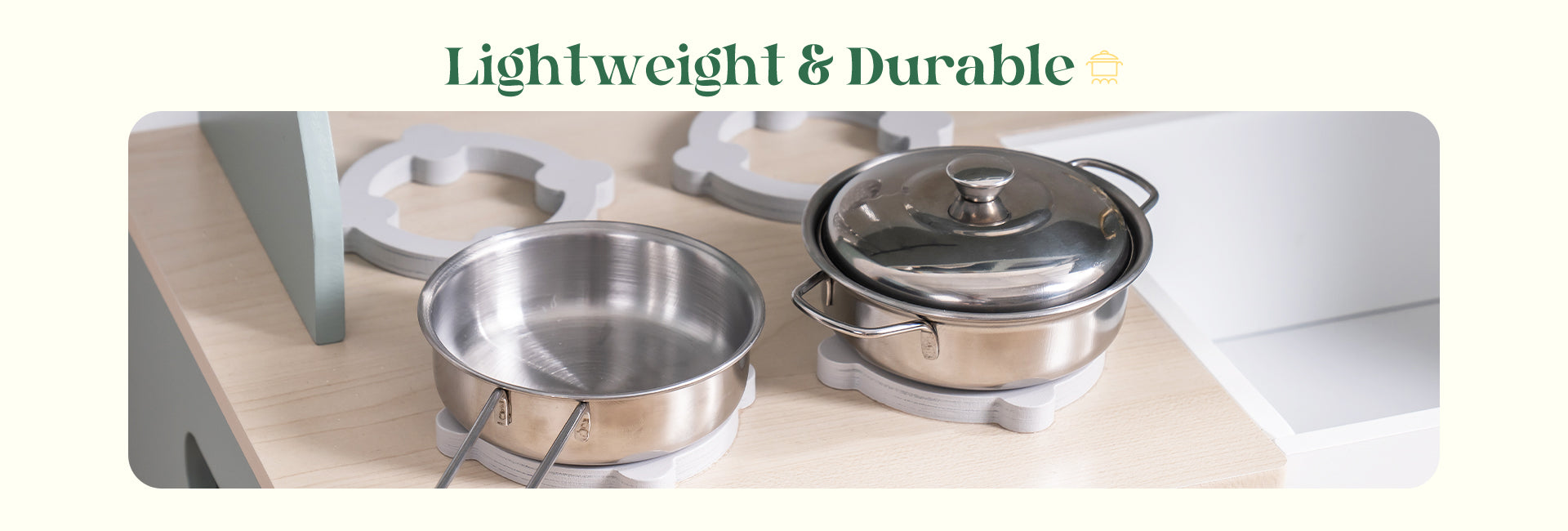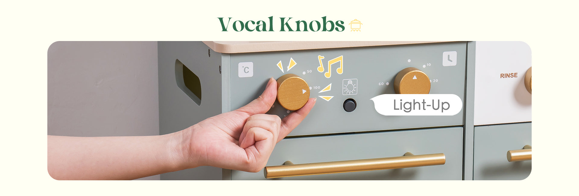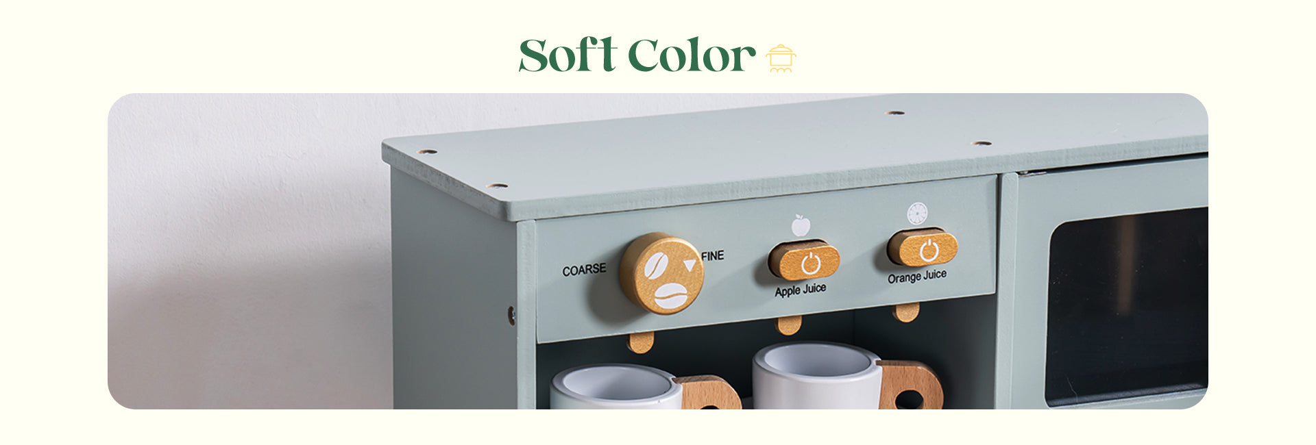 Der sanfte Grünton verleiht jedem Spielzimmer eine beruhigende, moderne Atmosphäre, während die robuste Holzkonstruktion für langanhaltenden Spielspaß sorgt. Mit interaktiven Funktionen und verkleinerten Proportionen ist es die perfekte Einrichtung für junge Köche, um zu entdecken, sich etwas auszudenken und sich durch kreative Kochgeschichten auszudrücken.