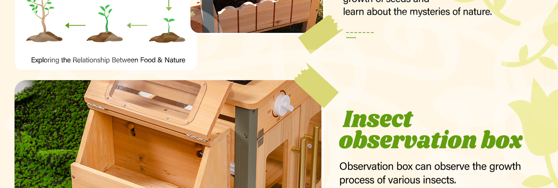 Das Spielset wurde mit Blick auf die Sicherheit von Kindern entwickelt und verfügt über abgerundete Kanten und ungiftige Oberflächen . Dank seiner großzügigen Gestaltung bietet es Platz für mehrere Kinder und fördert gemeinsames Spielen und soziale Interaktion . Die Outdoor-Matschküche verwandelt den Garten in eine anregende Lernumgebung, in der Kinder nach Herzenslust entdecken, kreativ sein und ihrer Fantasie freien Lauf lassen können.