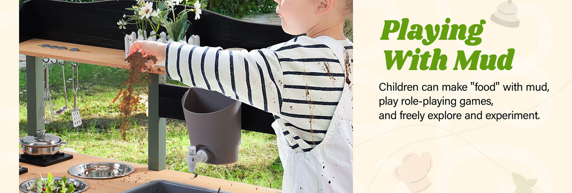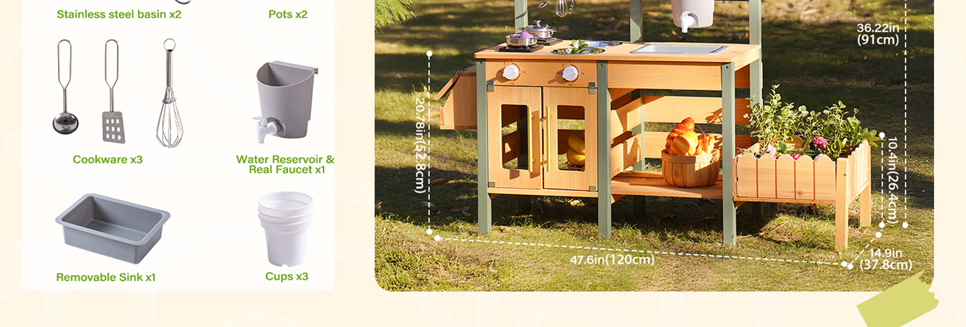 Holen Sie sich die Outdoor-Matschspielküche nach Hause und erleben Sie stundenlangen, lehrreichen Spielspaß im Freien – perfekt für Geburtstage , Familiengärten oder Spielbereiche im Kindergarten .
