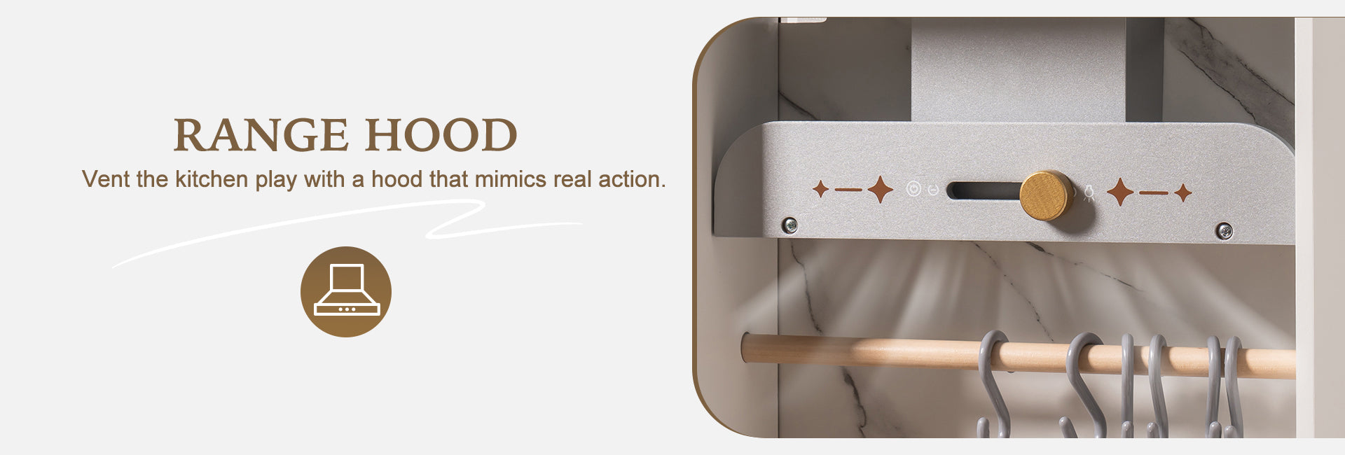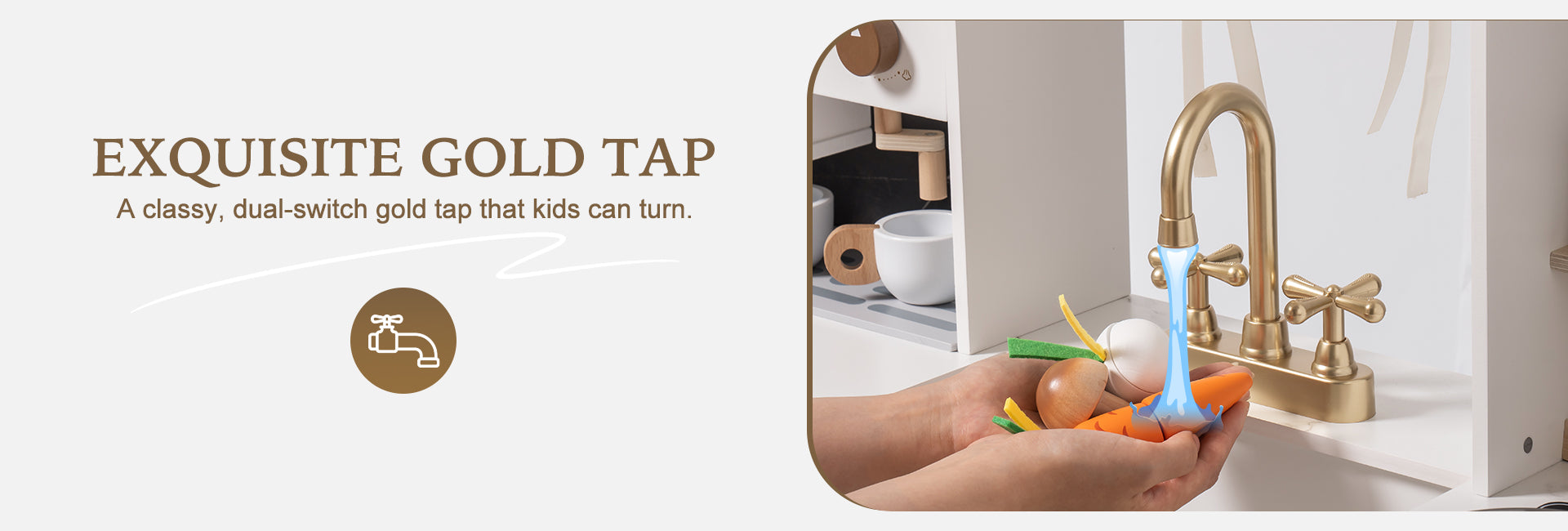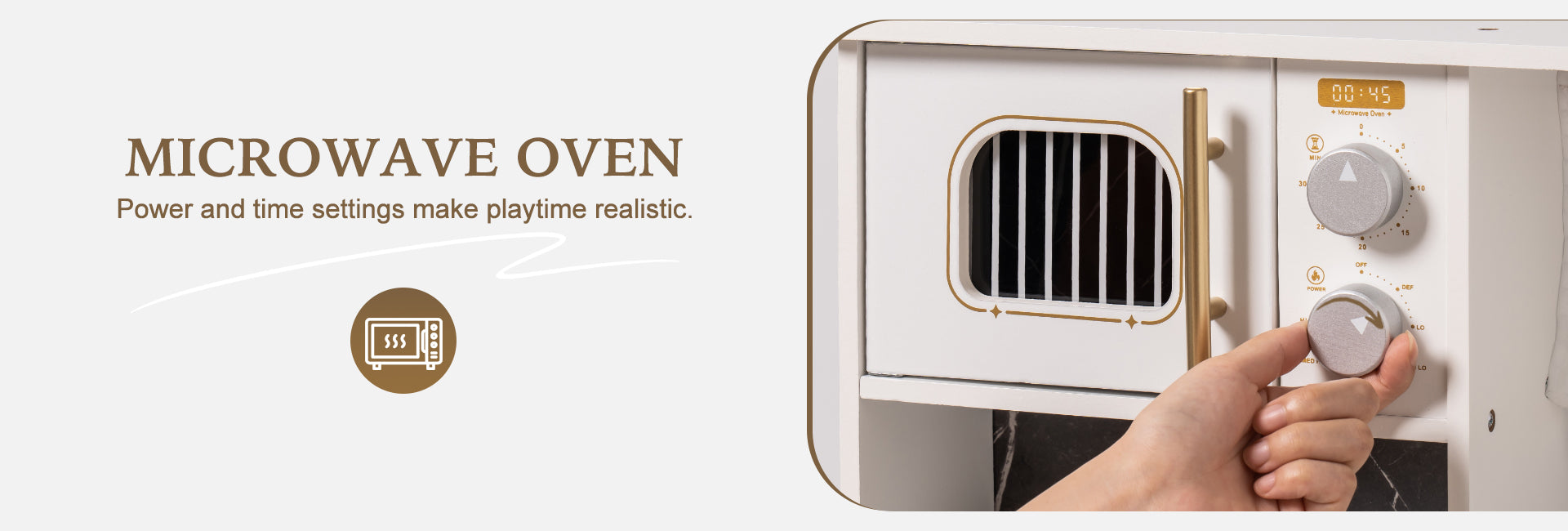 Ausgestattet mit einem ausziehbaren Backofen, einem Doppelkochfeld, einem drehbaren goldenen Wasserhahn und einem Kaffeemaschinen-Simulator, erweckt dieses Spielset den Spielspaß einer echten Küche zum Leben. Kinder können Knöpfe drehen, Backofentüren öffnen und Kaffee „brühen“ und so ihre Feinmotorik, Hand-Augen-Koordination und soziale Interaktion fördern.