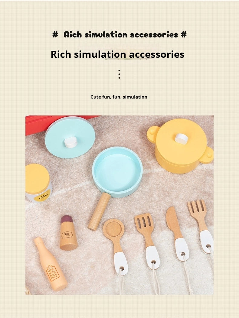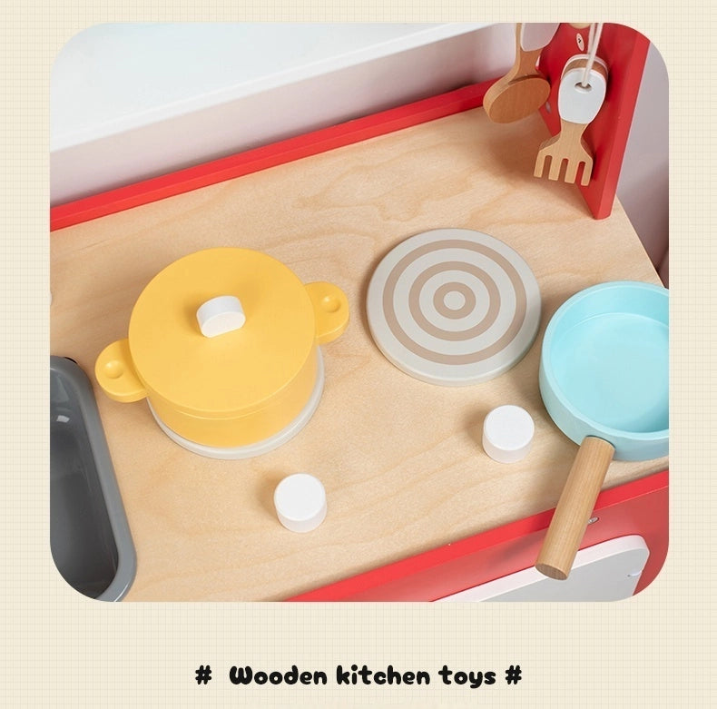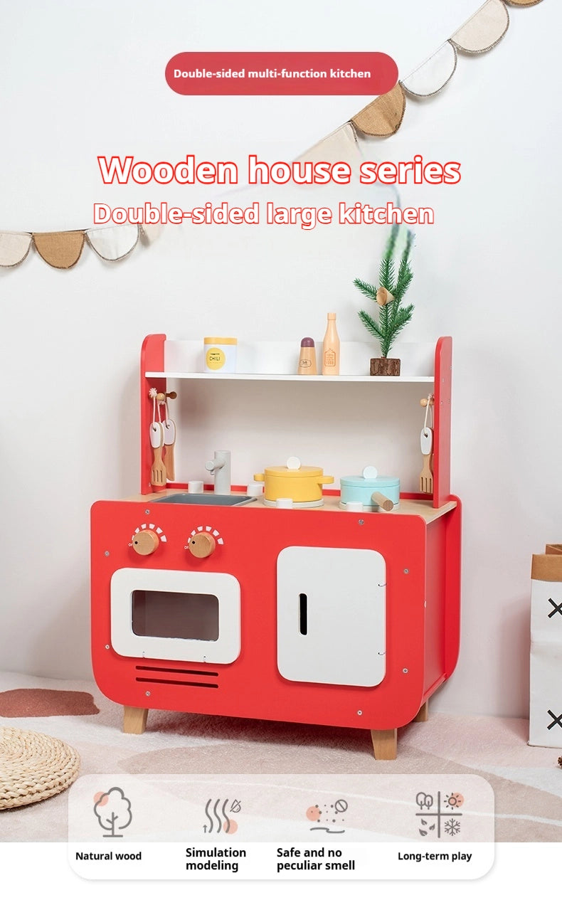 Rotes beidseitiges Holzspielküchen-Set