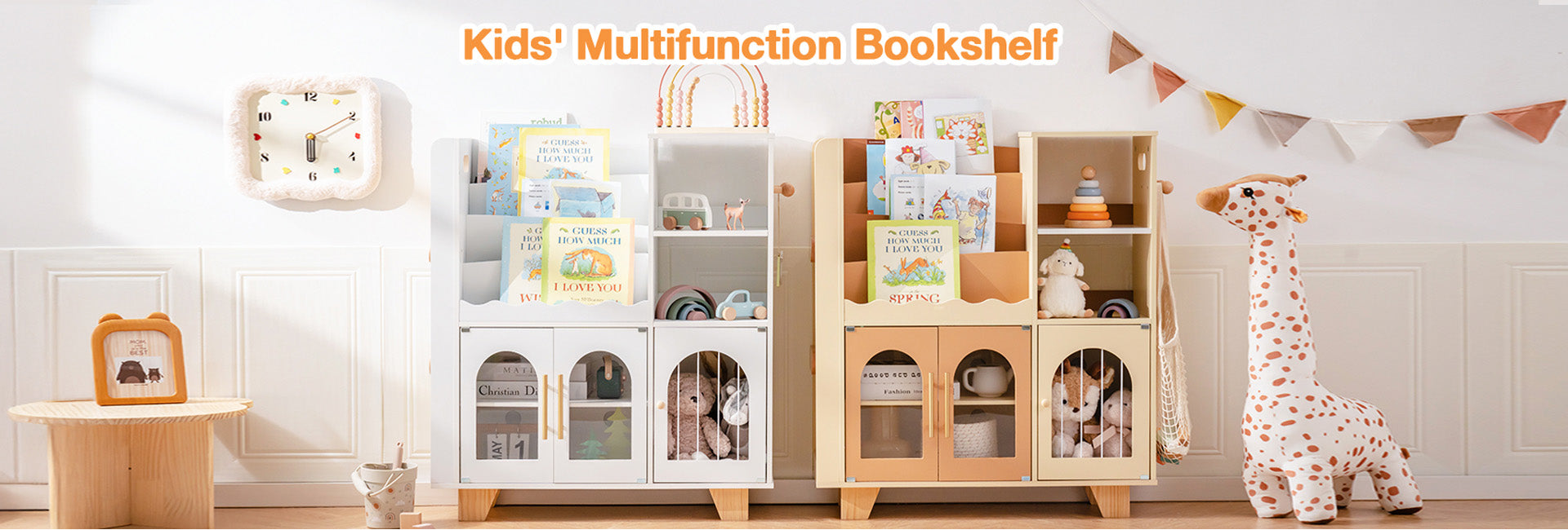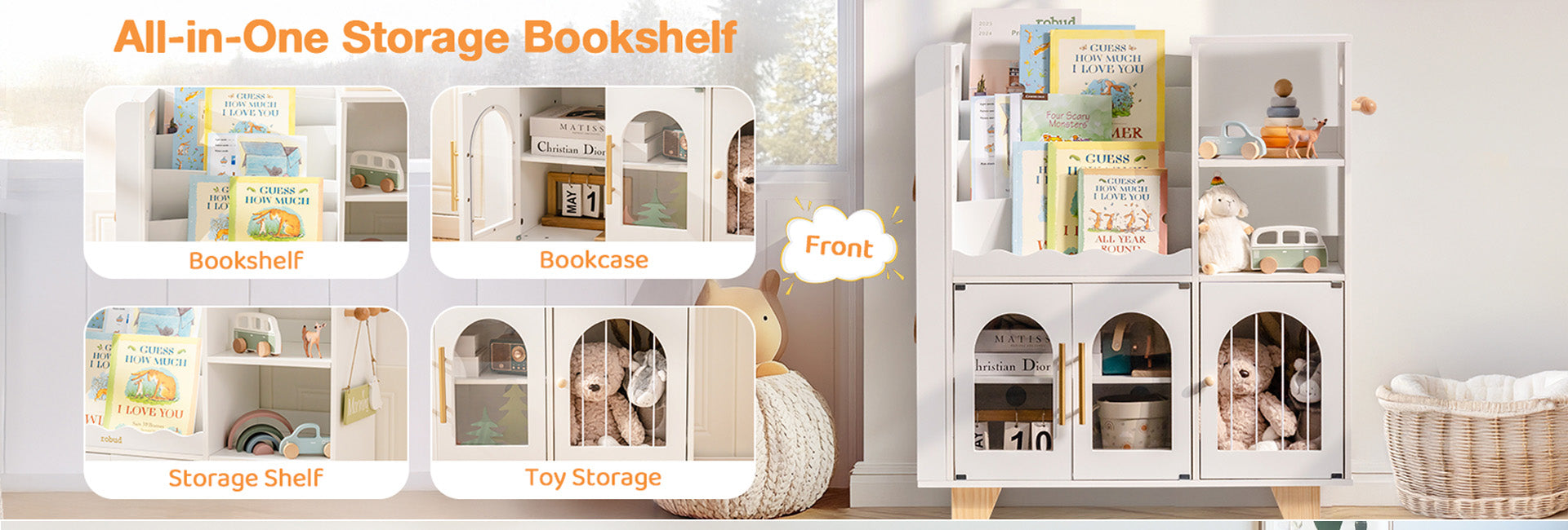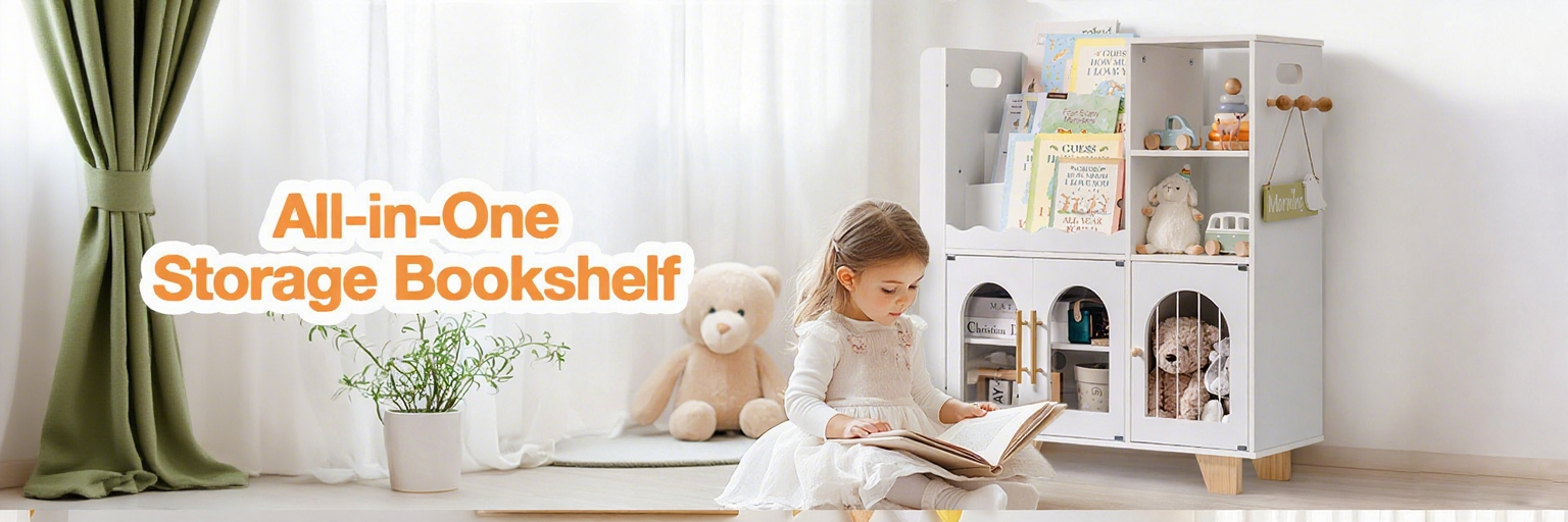 Dieses Kinderbücherregal ist stabil und robust, mit einer Holzkonstruktion und der idealen Größe. Es eignet sich für Bücherregale in Kinderzimmern, Kindergärten und Spielzimmern. Die Farben sind warm und elegant. Füllen Sie das Bücherregal mit Büchern und lassen Sie Ihre Kinder im Ozean des Wissens schwimmen.