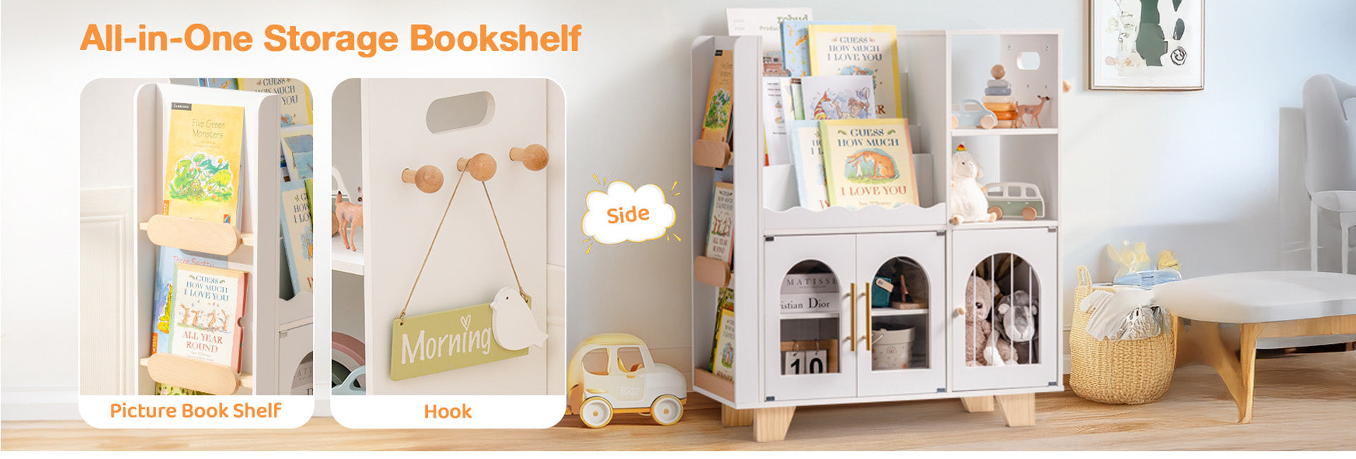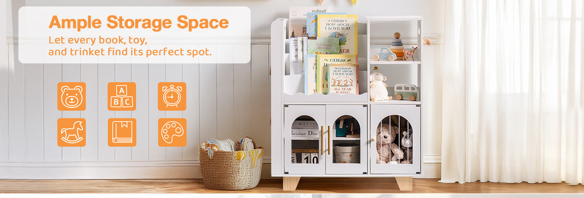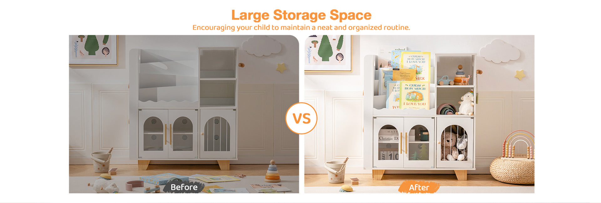 Aus umweltfreundlichem Holz gefertigt, ist es sowohl langlebig als auch sicher für die täglichen Aktivitäten von Kleinkindern. Ideal zur Aufbewahrung von Holzspielzeug, Büchern und Spielen.