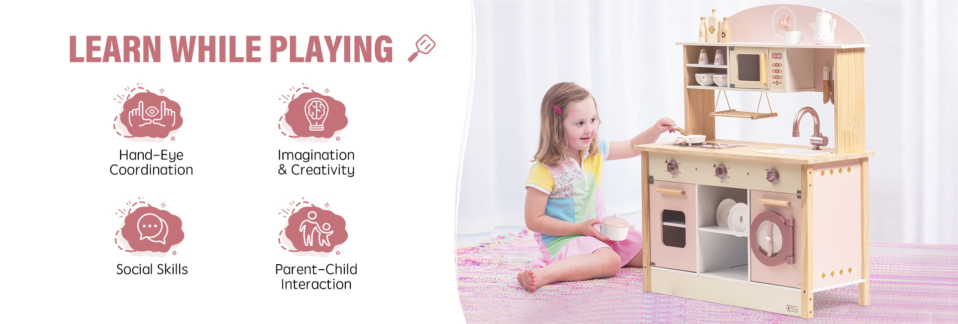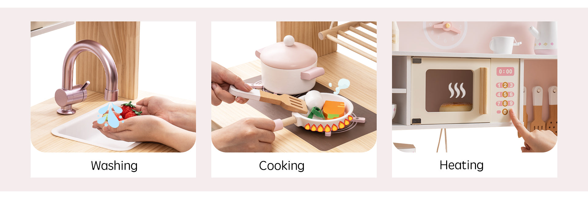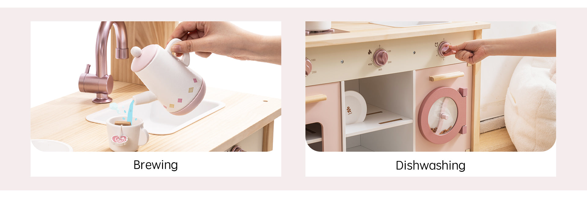 Dieses Rollenspielspielzeug ist mehr als nur eine Küche – es ist ein Werkzeug zum Geschichtenerzählen, Problemlösen und zur sozial-emotionalen Entwicklung. Ob Ihr Kind ein Fantasieessen zubereitet oder Freunden Tee serviert, es übt spielerisch wichtige Lebenskompetenzen.