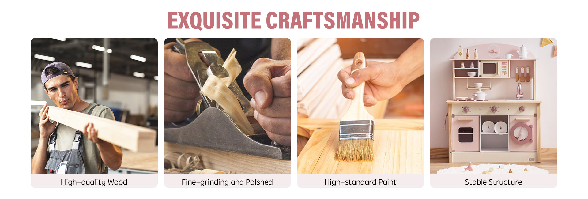 Dieses Set ist für kleine Hände geeignet und passt perfekt in moderne Spielzimmer. Es ist ein ideales Geschenk für Geburtstage, Feiertage oder Montessori-Lernen. Lassen Sie Ihr Kind die Freude am Kochen mit seiner eigenen Holzspielzeugküche entdecken.