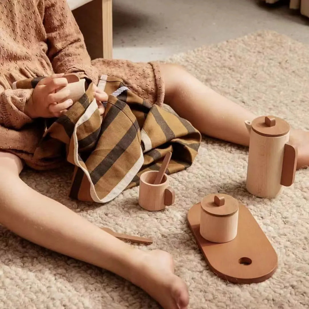 Fabriqué en bois massif de haute qualité, ce set de cuisine garantit durabilité et sécurité pour votre enfant. Ses bords lisses et sa finition non toxique permettent aux parents de jouer en toute confiance. Ce jouet stimule l'imagination et l'imagination des enfants. L'accessoire « coupe-coupe » favorise la coordination œil-main et invite au jeu collaboratif avec les frères et sœurs ou les amis.