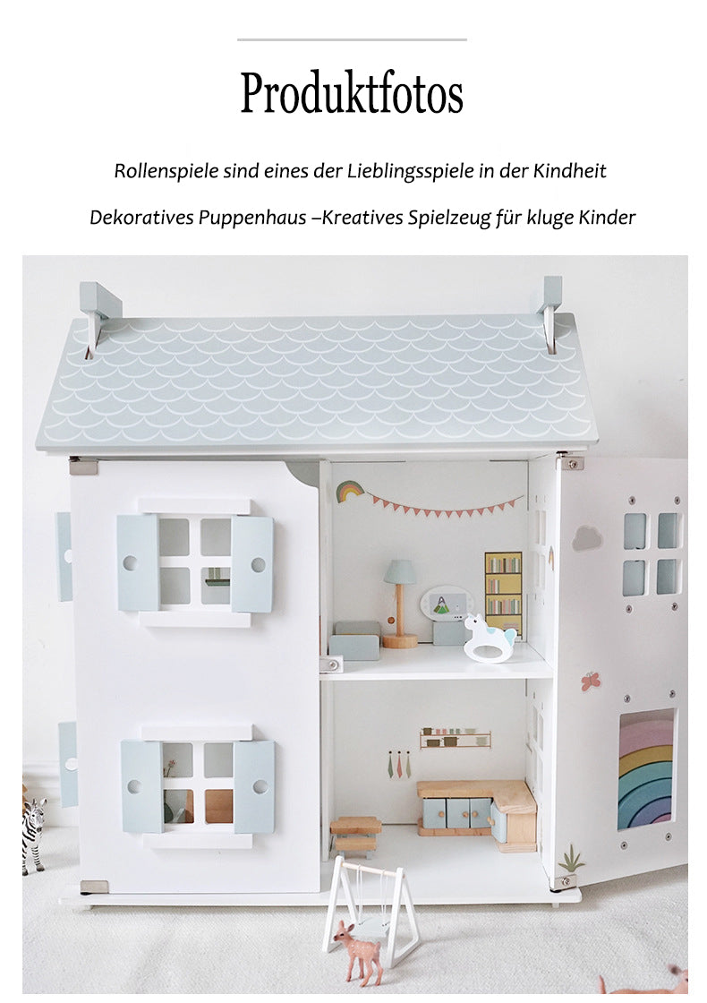 La maison de poupée en bois Lunamoa est un magnifique ensemble de jeu à deux étages qui inspire la narration et l'apprentissage Montessori. Avec ses côtés ouverts pour un jeu facile, son mobilier détaillé et son toit ouvrant ouvrant sur des pièces douillettes, elle encourage la créativité, la motricité fine et le développement émotionnel. Fabriquée en bois sûr et durable, cette maison de poupée intemporelle allie jeu et éducation, ce qui en fait la première maison de poupée idéale et un cadeau précieux pour les petits explorateurs curieux.