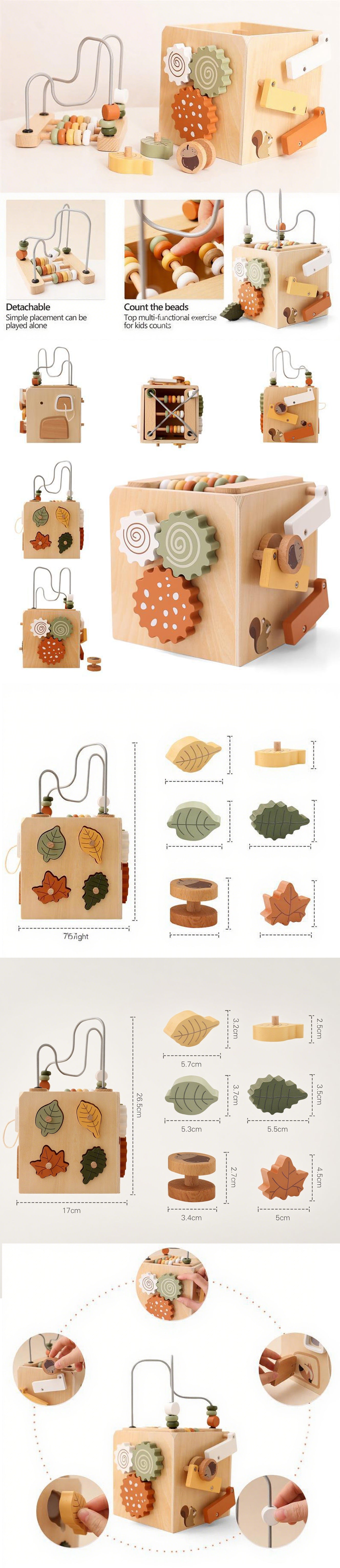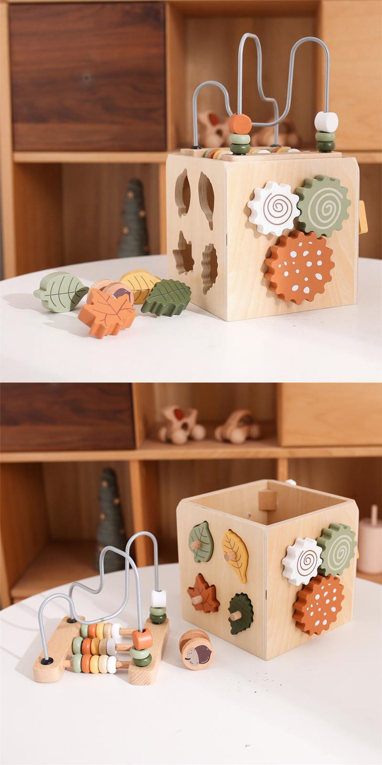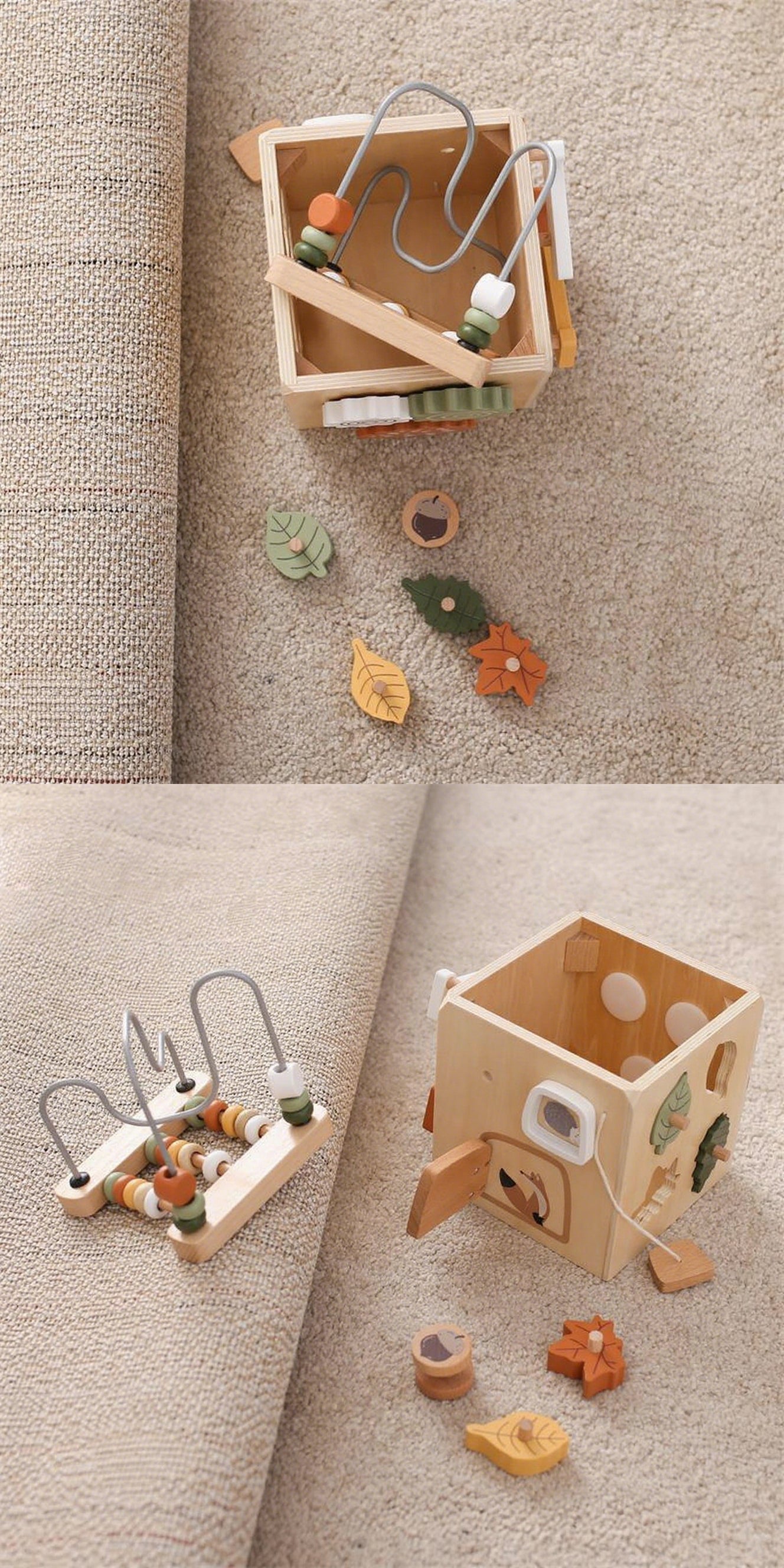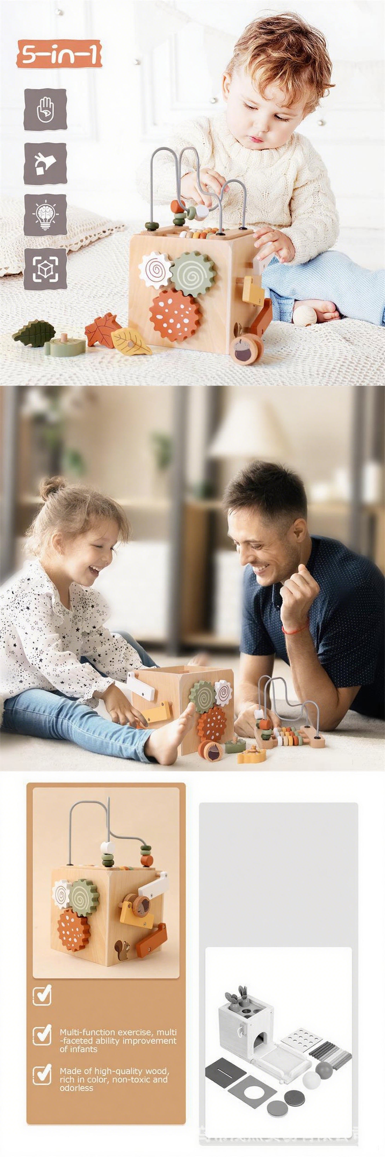 Cette charmante boîte d'activités en bois Lunamoa 5-en-1 combine labyrinthes de perles, jeux d'association de formes, engrenages rotatifs et bien plus encore pour créer une expérience ludique stimulante et sûre. Fabriquée en bois durable et non toxique avec des finitions lisses à base d'eau, elle est idéale pour stimuler la motricité fine et le développement sensoriel des bébés. Véritable jouet sensoriel, elle captive les tout-petits avec ses parcours de perles tactiles et ses jeux de formes colorées : un excellent exemple de jouets en bois conçus pour une créativité sans limites.