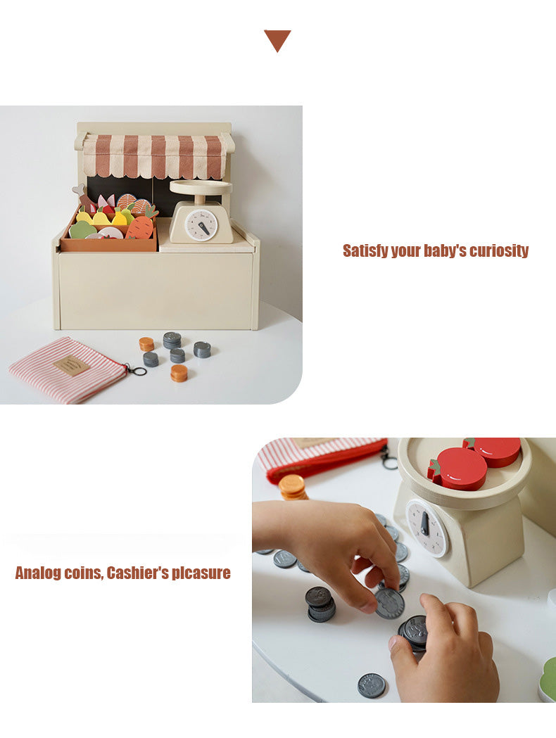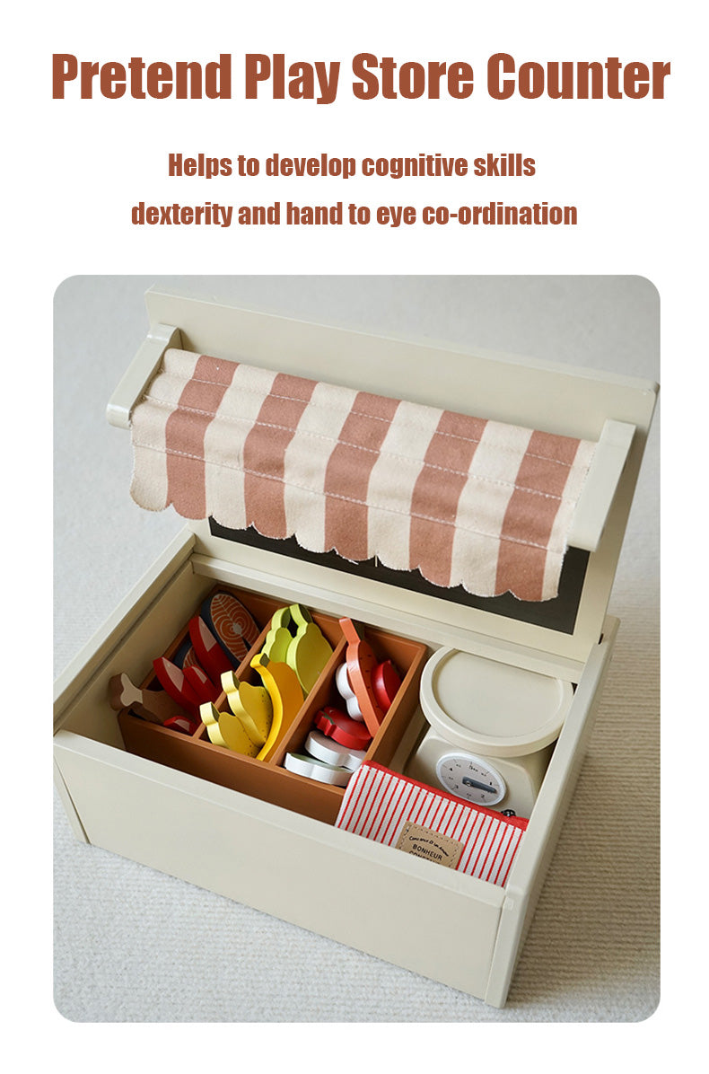 Fabriqué en bois naturel lisse, il offre un environnement tactile, durable et sûr où les enfants peuvent apprendre à compter, à trier et à interagir socialement. Cet ensemble de jeu encourage non seulement le jeu de rôle, mais favorise également le développement précoce grâce à des expériences sensorielles riches et à la découverte pratique.