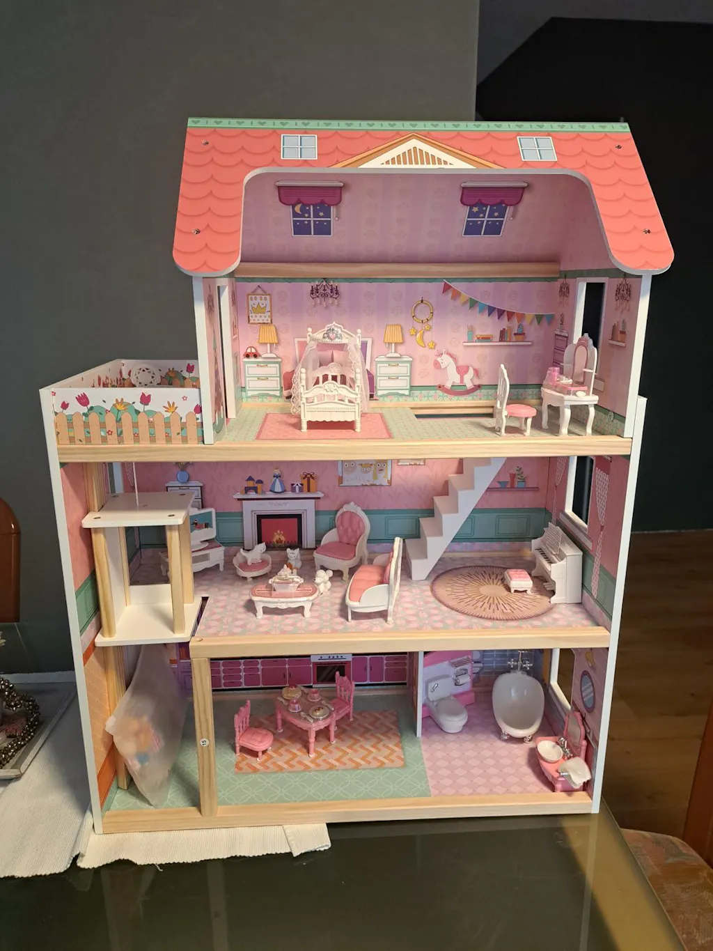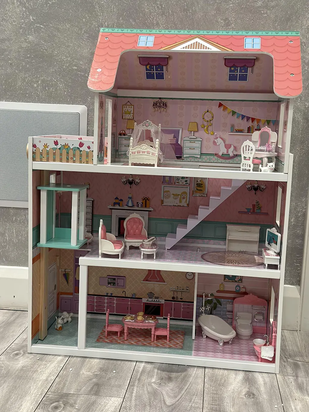 - 3-storey wooden dollhouse with Fountain Garden theme