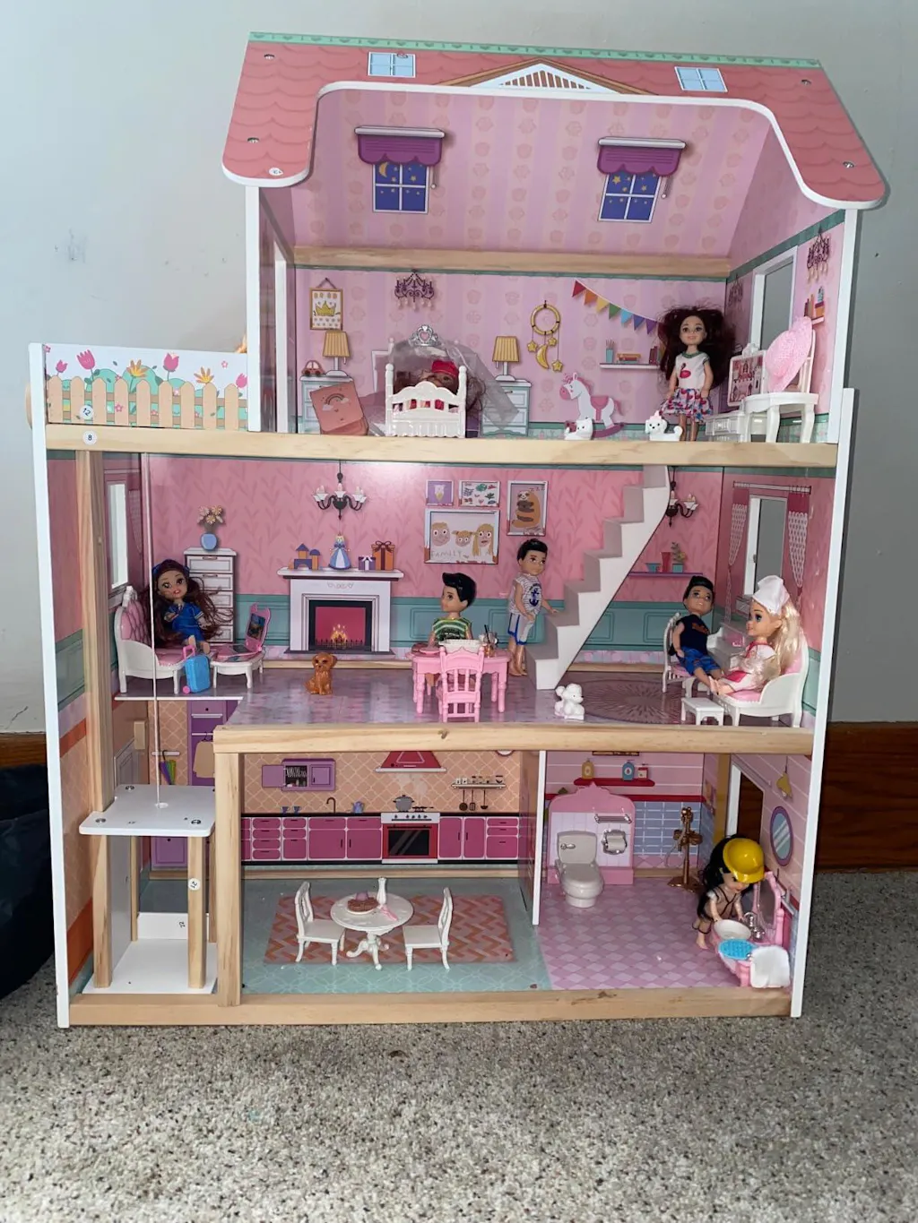 Designed with safety in mind, all edges are smooth and non-toxic, ensuring children can play without worry. The sturdy wooden construction ensures long-lasting enjoyment. Perfect for individual play or group activities, this dollhouse encourages cooperative play and imaginative storytelling.
