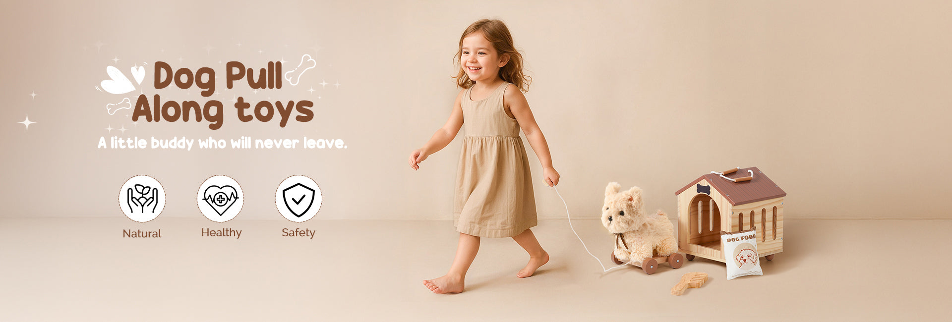 Perfectly sized for small hands, this pull-along pup encourages walking, balance, and coordination. As children guide their new pet, they develop responsibility and empathy – essential life skills nurtured through play.