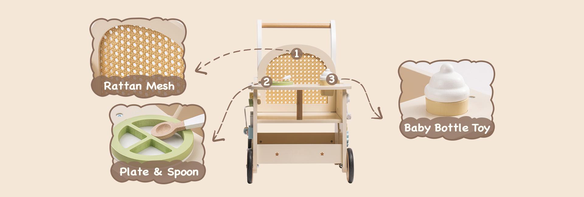 Rattan Baby Walker is a beautifully crafted push toy designed for toddlers learning to walk. Made with natural wicker and solid wood, it combines elegant design with safety and durability. This stroller-style walker supports balance, coordination, and role play—making it a favorite among toddler toys. Whether you're seeking wooden toys, wood toys, or toddler busy toys, this walker promotes movement and imagination. It also fits perfectly into baby learning toys collections and is a stylish choice for kids toys designed for ages 2–4.