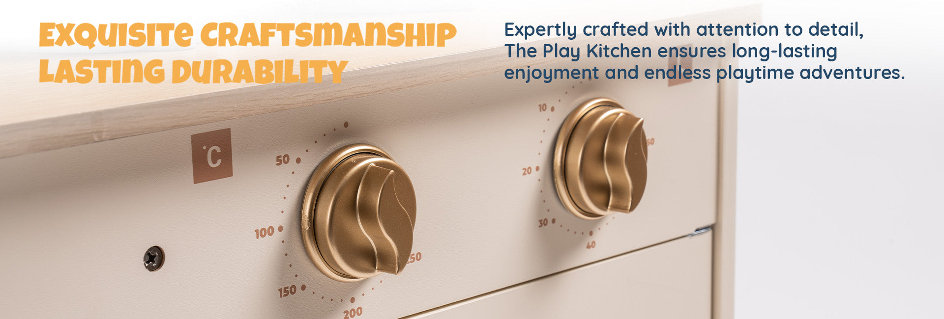 Crafted from eco-friendly wood and finished with child-safe paint, this kitchen set is as durable as it is beautiful. Whether your child is whipping up an imaginary breakfast or storing their toy pots and pans, every moment becomes an opportunity for learning and fun.
