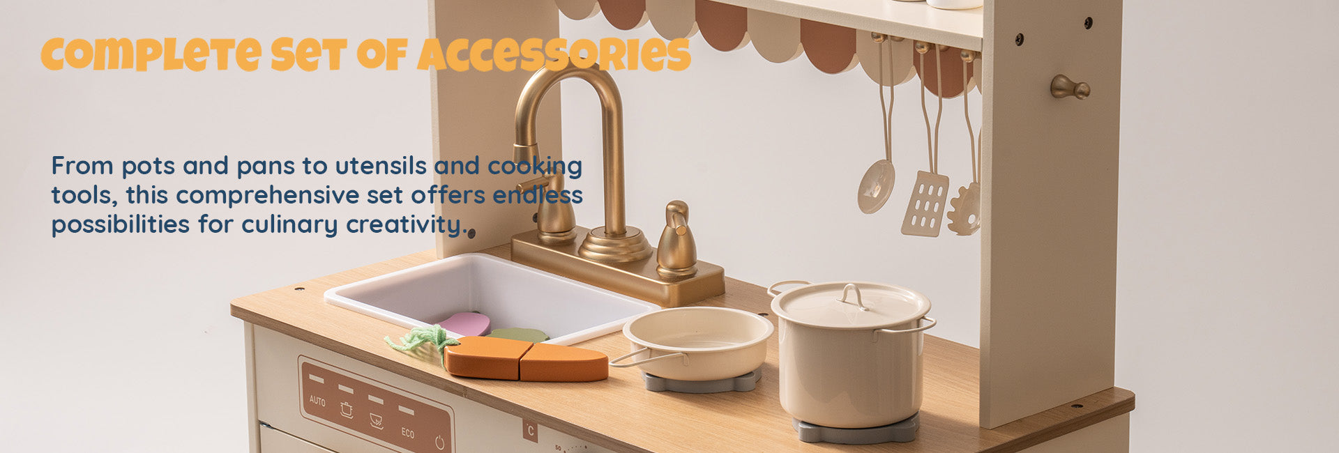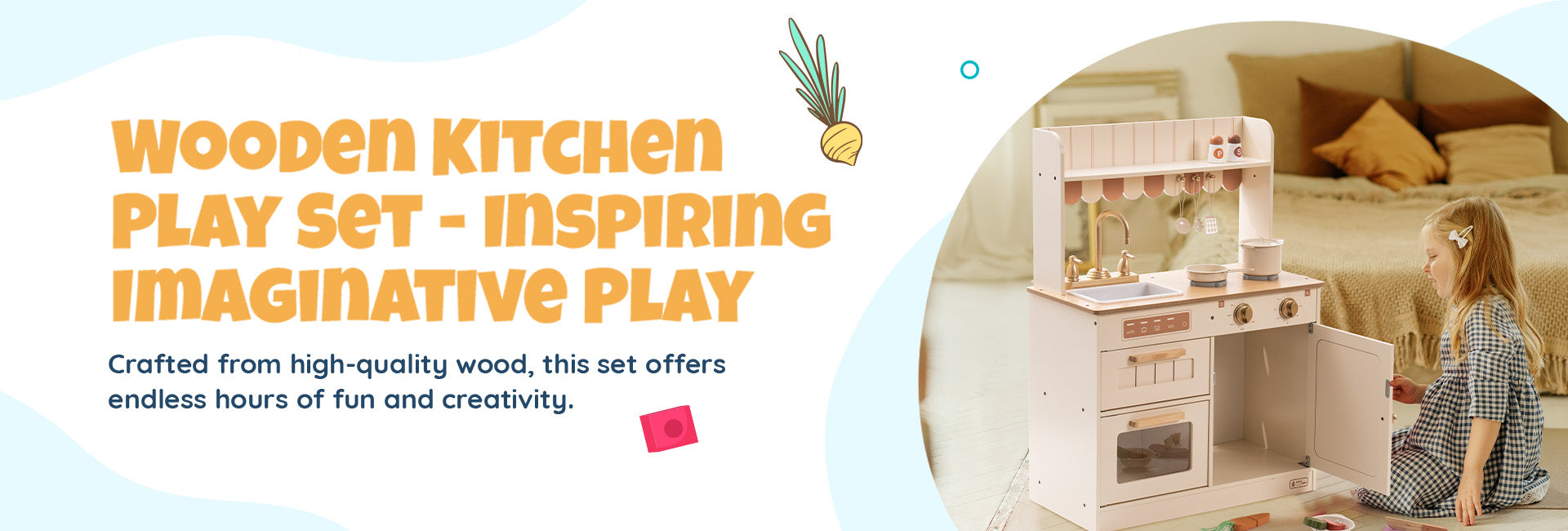 Fuel your child's imagination and creativity with this realistic wooden kitchen playset—expertly designed for pretend play for toddlers aged 3–5.