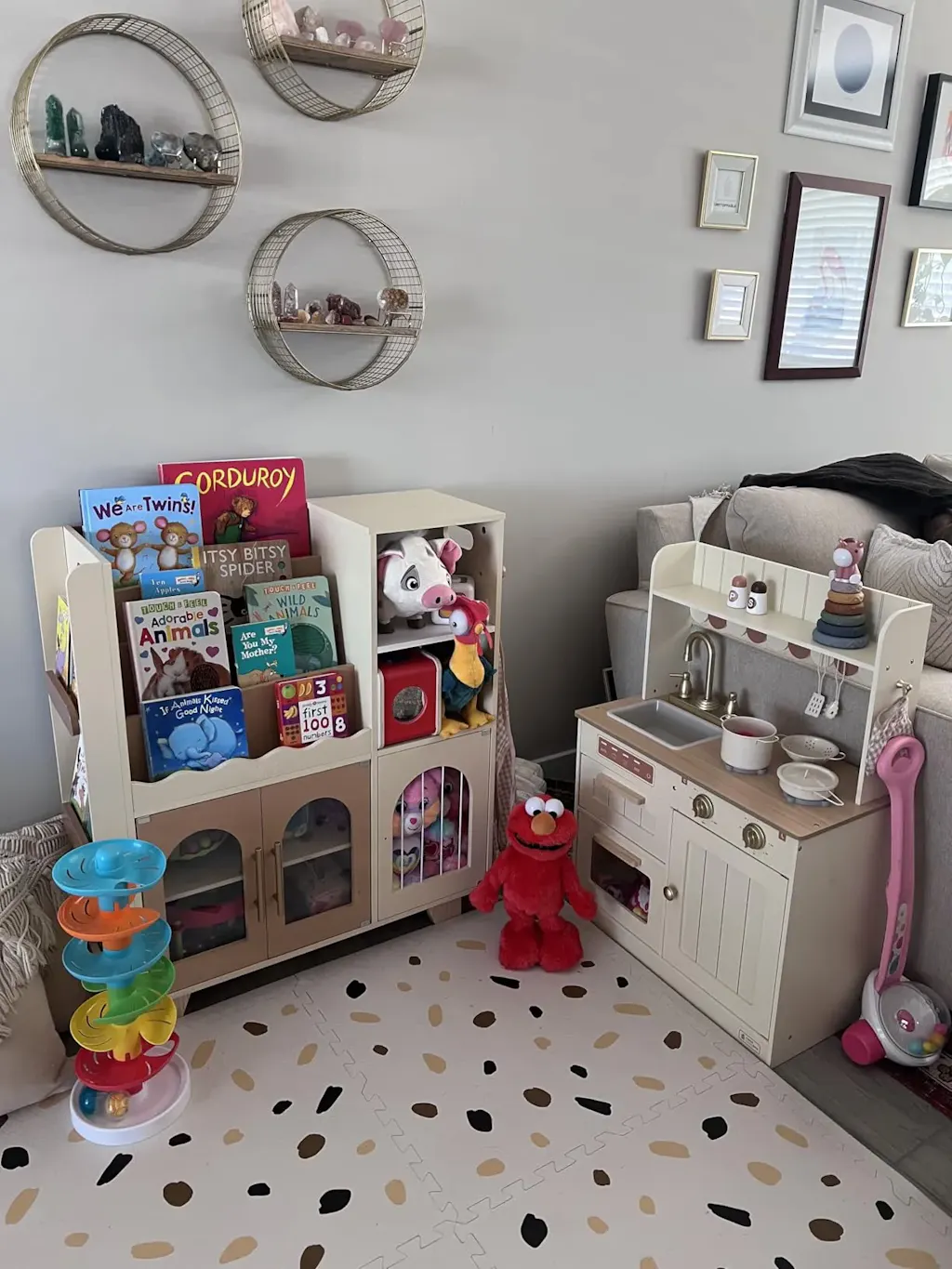 Keep playrooms tidy with this wooden children's bookshelf. Designed for toddler toys and kids toys, it features open bins and shelves for easy access.