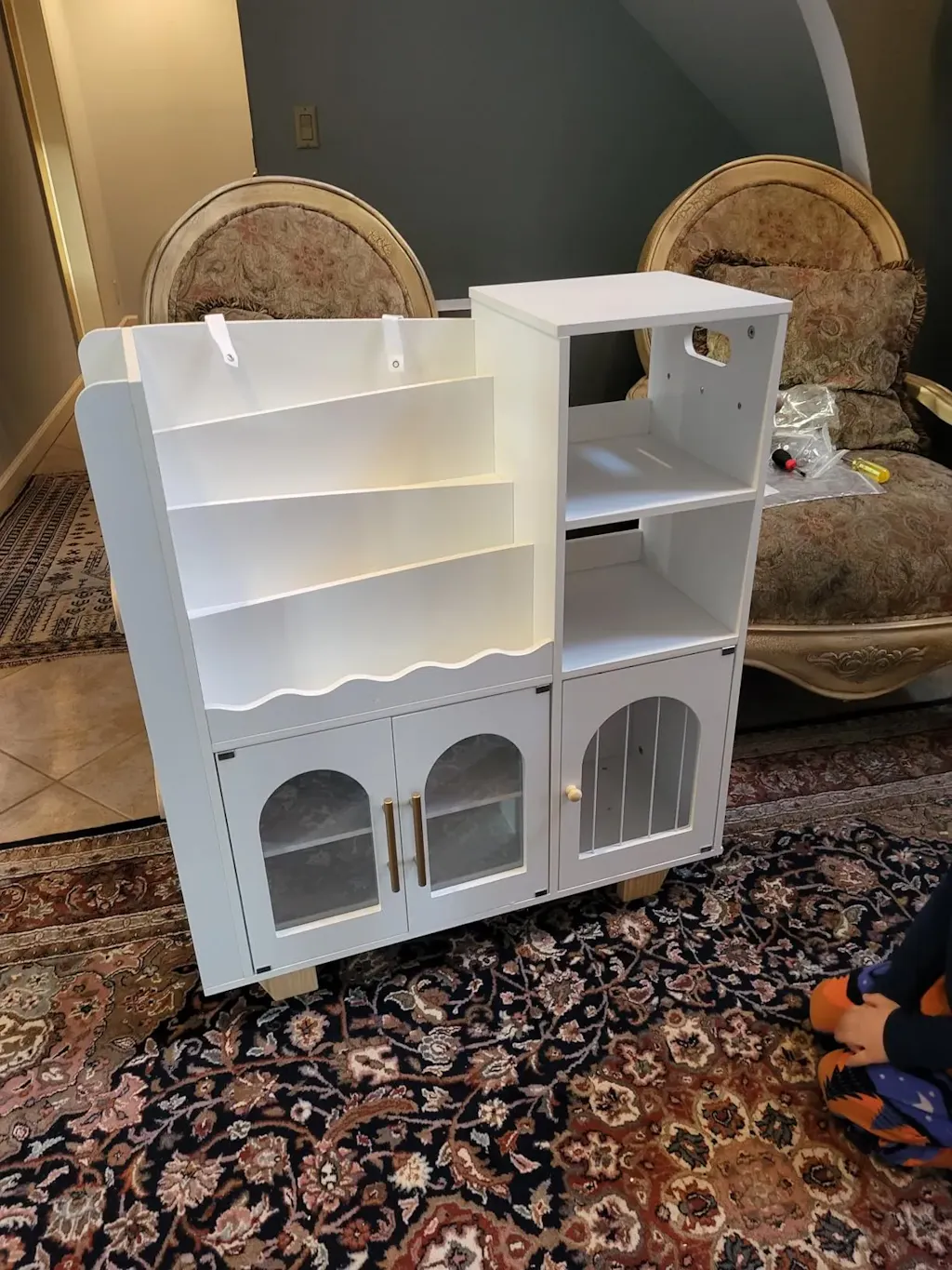 This children's bookshelf is stable and sturdy, with a wooden structure and an ideal size. It is suitable for bookshelves in children's rooms, nurseries, and playrooms. The colors are warm and elegant. Fill the bookshelf with books and let your children swim in the ocean of knowledge.