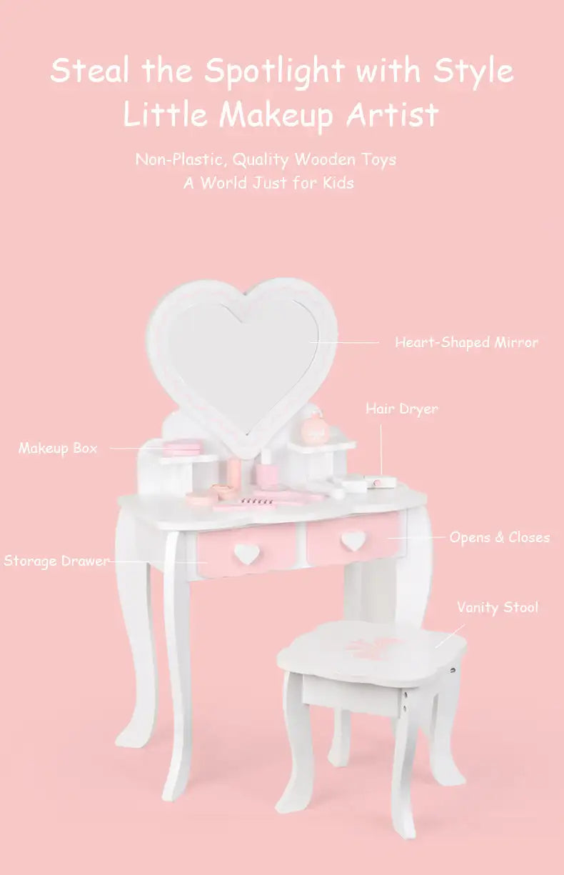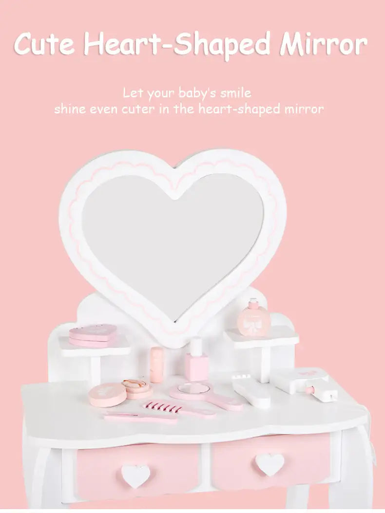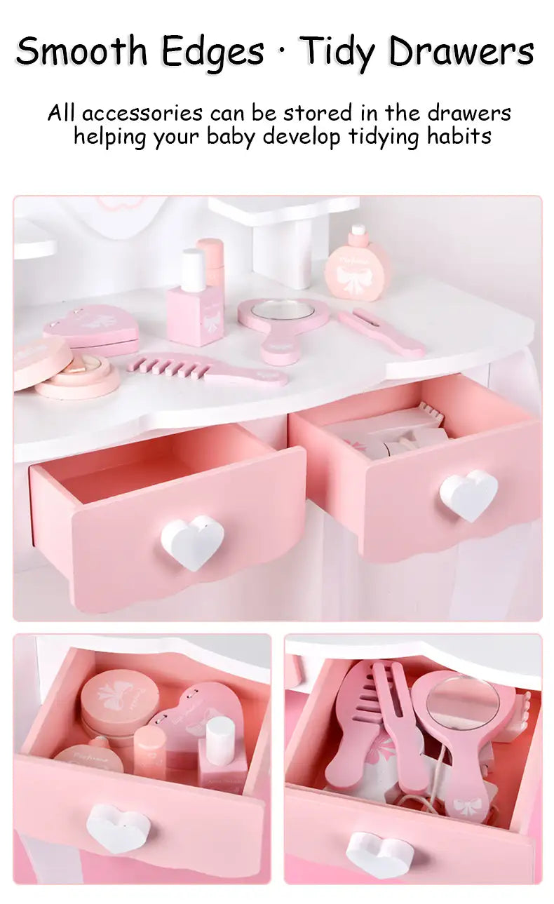 Delight your child with this Wooden Vanity Role-Playing Toy. Designed for imaginative pretend play, it includes a mini vanity table and accessories for makeup and dressing up. Made from eco-friendly wood with smooth, safe finishes, it encourages creativity, role-play, and social interaction. Perfect as a birthday gift for kids aged 3 and above who love pretend makeup and dressing fun.